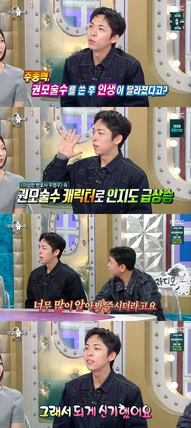 '라디오스타'에서 주종혁이 '이상한 변호사 우영우' 이후 인지도가 급상승했다고 말했다.