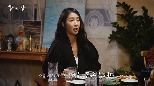 이상형에 대해서는 “이제는 의미가 있나 싶다”면서도 확고한 기준을 제시했다. 소유는 “말을 예쁘게 하는 사람, 욕을 하지 않는 사람이 좋다”고 강조했다. 또한 “얼굴은 진짜 안 보는데 몸은 본다. 너무 마른 사람은 내가 지켜줘야 할 것 같아서 싫다. 식스팩이 없어도 듬직하고 살집이 있는 스타일이 좋다”며 구체적인 취향을 덧붙였다.