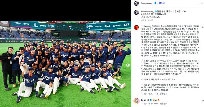 더불어 이정후의 SNS에서도 이 같은 댓글을 확인할 수 있었다. 이정후는 지난 10일, "많은 응원 해 주셔서 감사합니다. 2라운드도 열심히 하겠습니다. 가자 마이애미로"라는 게시글을 올리며 팬들에게 감사를 전했다.