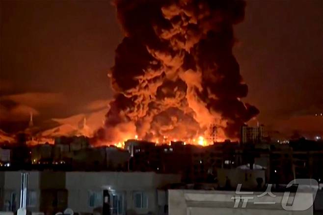 이란 수도 테헤란 석유 저장소에서 화염이 치솟는 모습