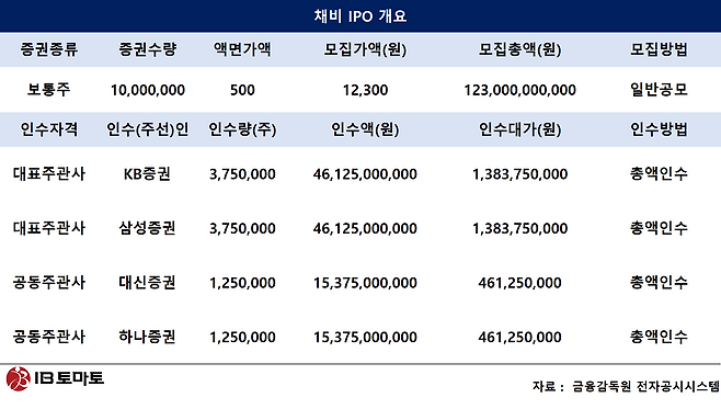 이번 IPO에선 KB증권과 삼성증권(016360)이 대표 주관사를 맡았다. KB증권에 있어서 이번 채비의 IPO는 여러 측면에서 중요하다. 약 5개월 만에 맡은 대표 주관 딜이라는 점과 함께 그룹 계열사인 KB자산운용이 프리IPO에 참여한 기업의 상장이라는 점 때문이다.
