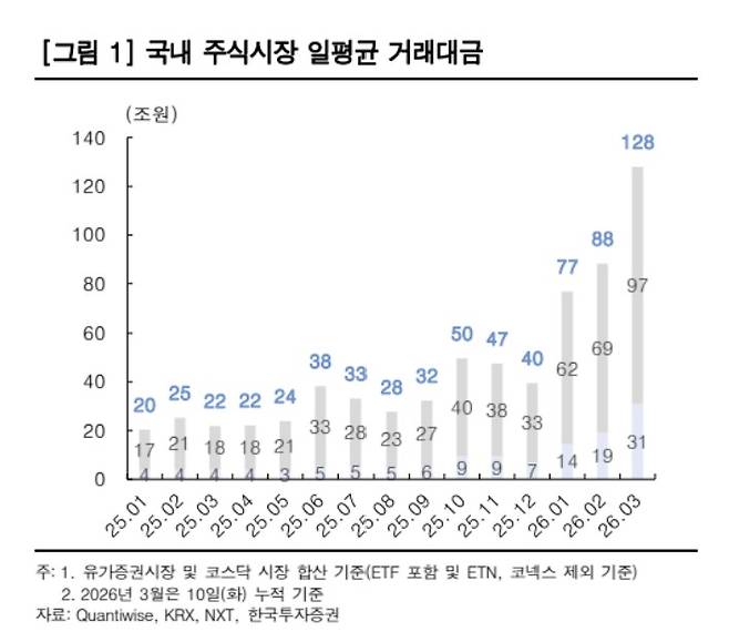 한국證 “증권업, 거래대금 확대로 비중확대 유지…키움·삼성증권 ‘최선호주’”
