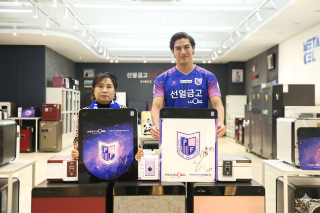 파주는 11일 오후 구단의 메인 스폰서인 선일금고 대회의실 및 전시실에서 선일금고 김영숙 대표와 주요 임원진이 참석한 가운데 시암 선수의 공식 입단 기념촬영을 진행했다.