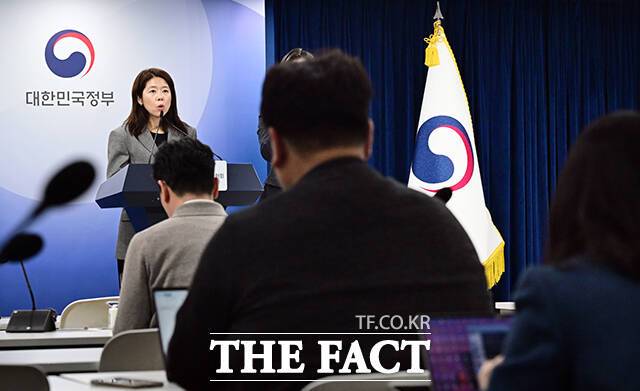 [더팩트ㅣ임영무 기자] 윤여진 개인정보보호위원회 조사1과장이 12일 오전 서울 종로구 정부서울청사에서 롯데카드의 개인정보 보호 법규 위반과 관련한 전체회의 결과를 브리핑하고 있다.