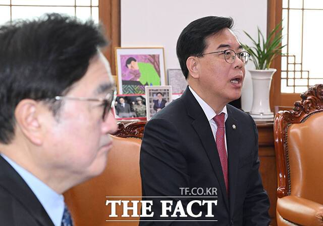 여야, 대미투자특별법 처리 앞두고 원내대표 회동 [TF사진관]