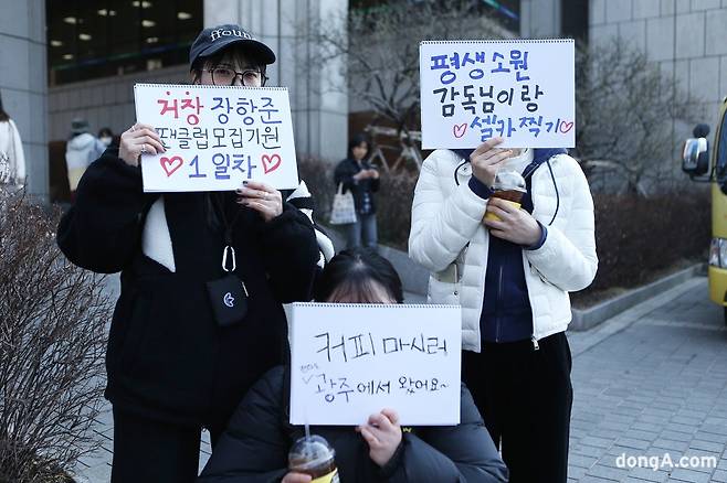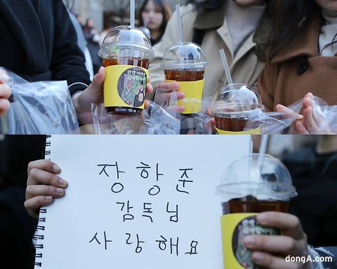 현장 곳곳에 있는 스케치북 문구도 눈에 띄었다. ‘거장 장항준 팬클럽 모집 기원 1일차’, ‘커피 마시러 광주에서 왔어요’, ‘평생 소원 감독님이랑 셀카 찍기’ 등 다양한 문구가 분위기를 한층 끌어올렸다.