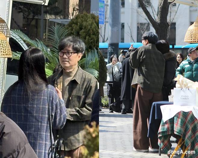 시민들은 지나가다 멈춰 사진을 찍고 주변 사람들에게 자랑하기도 했다. 한국 영화 시장에 오랜만에 등장한 ‘천만 영화’인 만큼, 장항준 감독을 직접 봤다는 사실만으로도 자랑거리가 된 셈이었다.