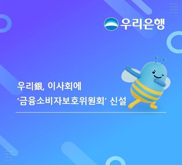 우리은행은 금융소비자 보호를 경영 핵심 가치로 확립하기 위해 이사회에 '금융소비자보호위원회'를 신설한다고 12일 밝혔다.