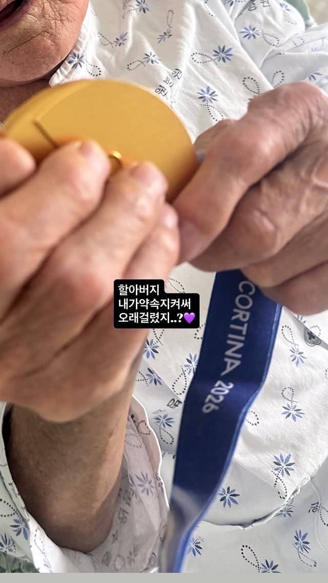 병원복을 입은 노도희 할아버지는 두 손으로 손녀가 따낸 금메달을 꼭 쥐고 있어 감동을 자아냈다.