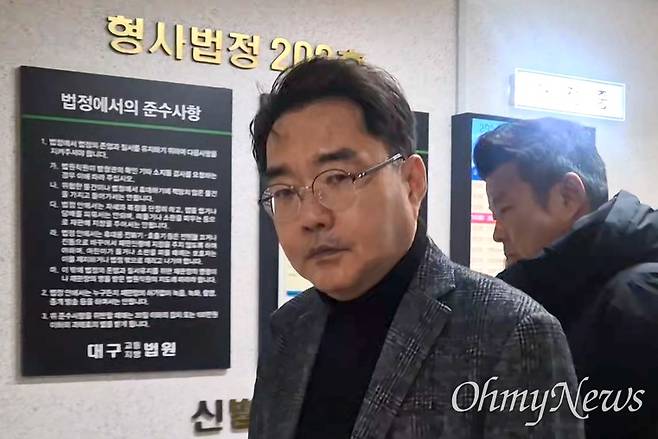 | ▲ 윤석준 대구 동구청장이 지난 2025년 12월 5일 대구고법에서 열린 항소심 선고가 끝난 후 법원을 빠져나가고 있다. |