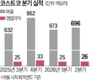 코스트코 수익성의 핵심은 멤버십 수수료다. 이번 분기 멤버십 매출은 13억6000만달러(약 2조85억원)로 전년 대비 13.6% 늘었다. 이 수수료가 전사 영업이익(약 26억달러)의 52%를 차지한다. 김승혁 키움증권 연구원은 “상품 마진이 ‘제로(0)’가 돼도 멤버십만으로 이익의 절반을 지탱하는 구조”라고 설명했다.