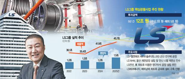 LS그룹은 올해부터 국가 전략산업인 핵심광물 소재에 투자를 집중하며 구 회장의 양손잡이 경영에 속도를 낼 방침이다. 구 회장은 올 초 신년 하례식에서 “향후 5년간 해저케이블·전력기기·소재 분야에 국내 7조 원, 해외 5조 원의 투자가 예정된 만큼 경기 상승 국면에 새로운 기회를 선점하기 위해 재무적 탄력성을 확보해야 한다”고 강조한 바 있다.