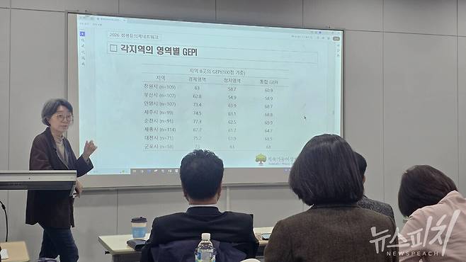 | ▲ 이날 문지현 세종지속협 성평등분과위원장이 ‘경제와 정치 영역에서의 성평등한 삶’을 주제로 보고서를 발표했다. |