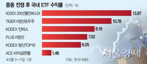 중동전쟁에 인버스·방산·금 ETF만 웃었다