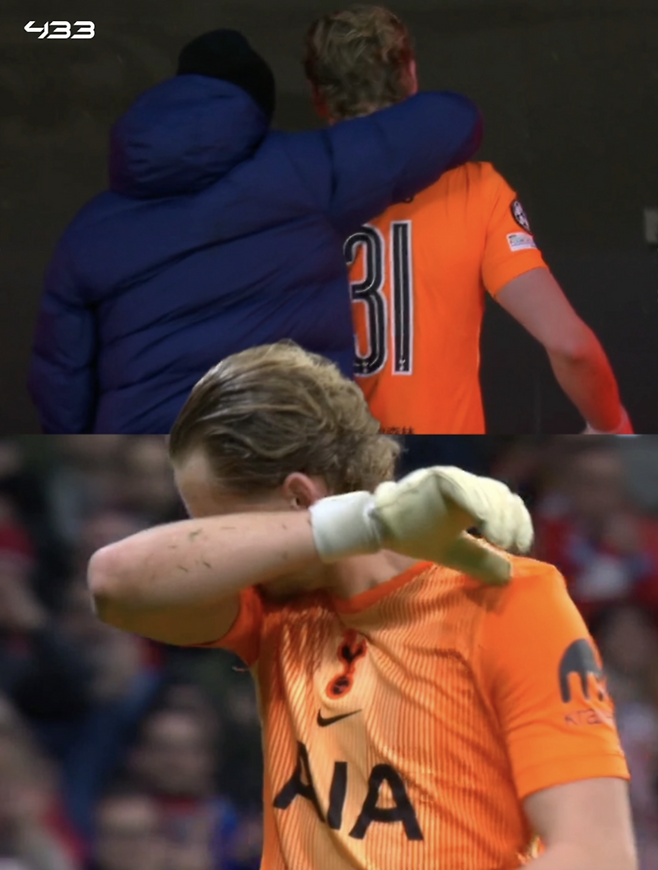하지만 여기서 또 한 번 놀라운 장면이 연출됐다. 이고르 투도르 감독이 곧바로 킨스키를 빼고, 주전 골키퍼 굴리엘모 비카리오를 투입한 것. 흔히 볼 수 없는 이례적인 결정이었다. 망연자실한 킨스키는 장갑을 벗으며 경기장을 빠져나왔고, 단 17분을 소화하며 3실점을 기록한 뒤였다.