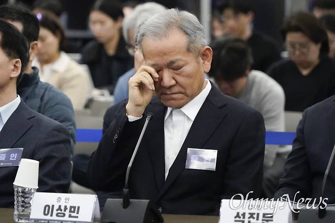 | ▲ 10·29 이태원참사 진상규명 청문회 이상민 전 행정안전부 장관이 12일 서울 중구 은행회관에서 열린 10·29 이태원참사 진상규명 청문회에 증인으로 참석하고 있다. |