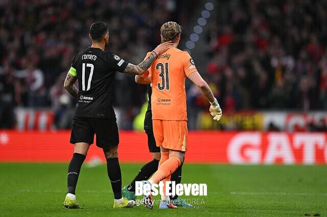 레알 마드리드 골키퍼 티보 쿠르투아가 토트넘 홋스퍼 골키퍼 안토닌 킨스키를 진심으로 위로했다.