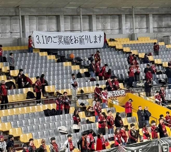 중국 매체 '소후닷컴'은 12일(한국시간) "감동적인 순간이다! 한국 팬들이 ACLE 경기 도중 동일본 대지진 희생자들을 추모하는 걸개를 걸었다"라고 보도했다.