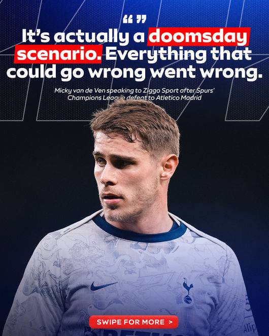 구단 역사상 최초로 공식전 6연패에 빠진 토트넘. 경기 후 반 더 벤은 고개를 들지 못했다. 그는 네덜란드 '지고 스포츠'와 인터뷰에서 "솔직히 말해 끔찍하다. 말 그대로 종말 같은 시나리오다. 경기 초반 20분 동안 일어날 수 있는 모든 나쁜 일이 다 일어났다"라고 되돌아봤다.