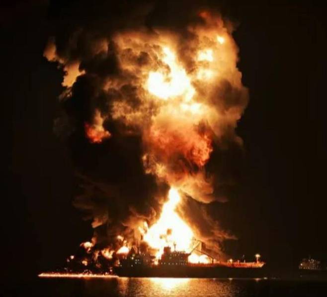 | 이란 공격에 불타는 유조선 11일(현지 시간) 호르무즈 해협과 800km가량 떨어진 이라크 바스라항에 정박 중이던 유조선 두 척이 이란의 공격을 받아 불타고 있다. 이란의 공격이 페르시아만 전역으로 확산되고 있다. 사진 출처 X |