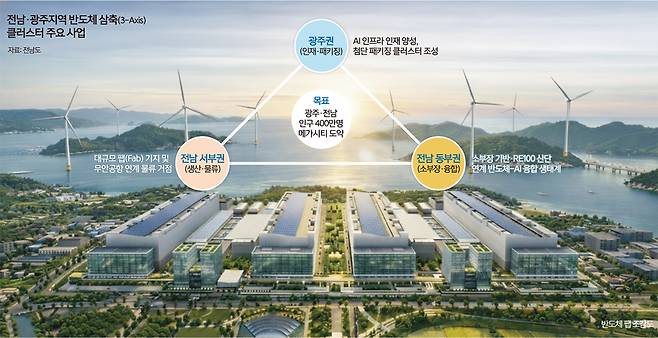 12일 전남도에 따르면 전남과 광주는 행정구역의 경계를 넘어 하나의 경제공동체로서 ‘반도체 삼축(3-Axis) 클러스터’ 전략을 추진한다.