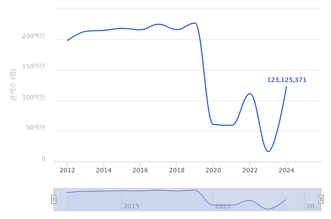 관람객 수 코로나19 이전 대비 절반 수준