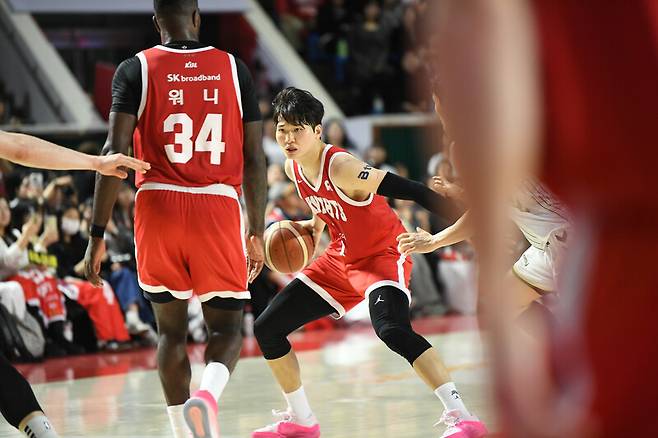 안영준(195cm, F)이 SK 속공의 중심으로 우뚝 섰다.