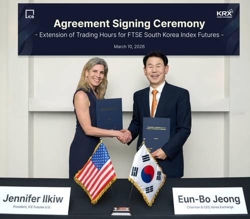 거래소는 지난 10일(미국시각) 독일 파생상품 거래소 유렉스(Eurex)와 미국 ICE 선물거래소와 한국물 지수 파생상품의 거래 시간을 전면 확대하는 계약을 체결했다. 유렉스에서는 3월 30일부터, ICE에선 4월 1일부터 한국물 거래시간이 연장된다.
