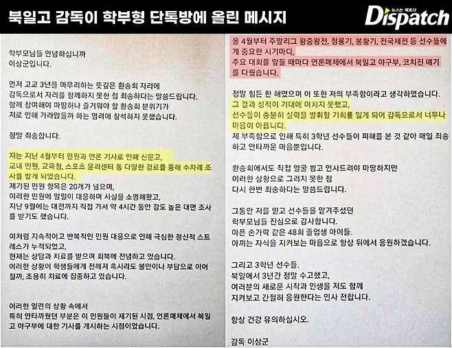 끝으로, 북일고 야구부 관계자들이 '디스패치'에 전한 이야기다.