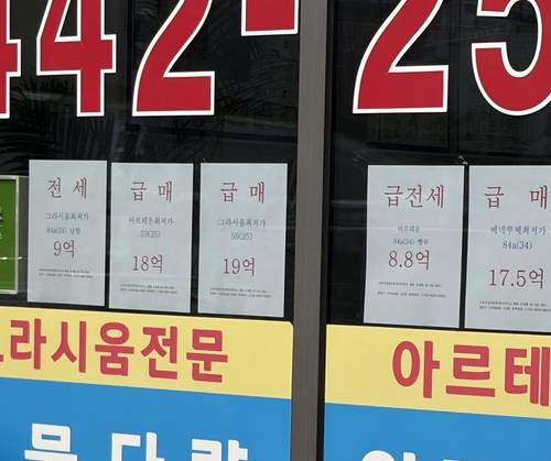 (서울=연합인포맥스) 한이임 기자 = '부동산 바로미터'라 불리는 강남구 대치동의 한 아파트 단지 인근 상가. 기자가 찾은 지난 11일 이곳 중개업소 유리창에는 '급전세 19억원'이라고 적힌 매물 안내문이 빼곡히 붙어 있다. 최근 이 단지에서는 세입자를 구하지 못해 가격을 낮춘 이른바 '급전세' 매물이 등장하고 있다.