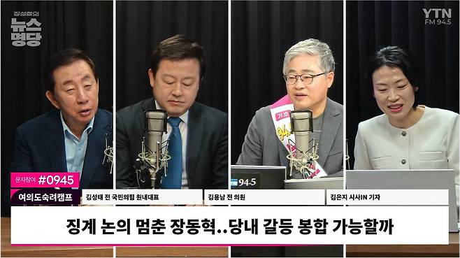 ▲ 김용남 : 많은 국민들께서는 국민의힘이 뭘 해야 될지를 계속 알려주고 있어요. 김성태 전 의원님이 얘기하신 그 내용대로 하면 조금이라도 살아날 수 있어요. 장동혁 대표는 지방선거 때까지 모든 추가 징계를 안 하겠다는 게 핵심은 고성국 씨 징계 안 하는 거가 핵심이라고 봐요.