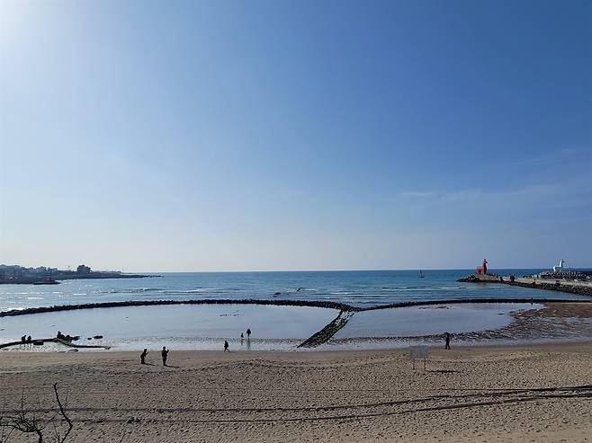| ▲ 이호동 쌍원담 돌담을 원형으로 쌓아 밀물 때 들어온 멸치나 물고기가 썰물 때 빠져나가지 못하게 해 잡는 제주의 전통 어업 방식이다. 옛 문헌을 바탕으로 복원해 현재는 체험 활동 공간으로 활용되고 있다. |