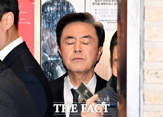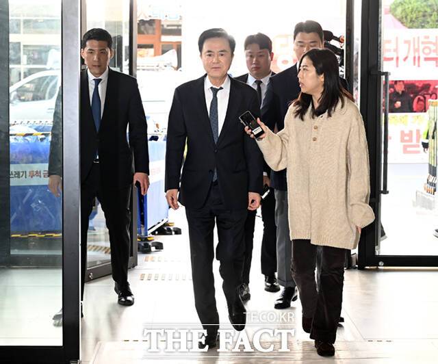 [더팩트ㅣ이새롬 기자] 김태흠 충남도지사가 13일 오후 서울 여의도 국민의힘 중앙당사에 도착해 6.3 전국동시지방선거 공천 후보자 면접에 앞서 취재진 질의에 답하고 있다.