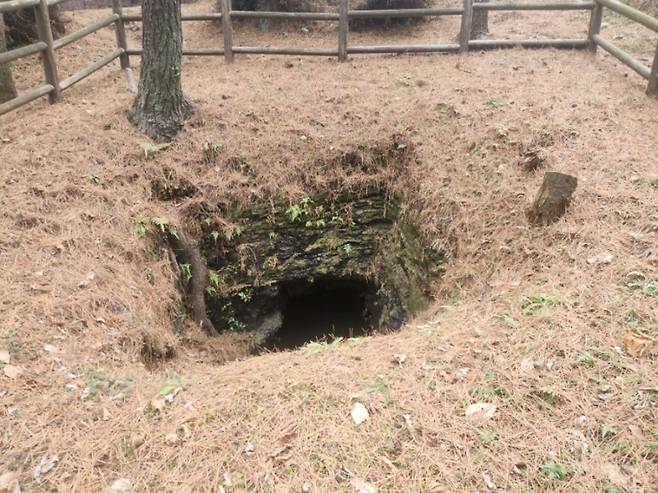 | ▲ 아름다운 비경 아래 숨겨진 아픈 역사의 흔적인 일제강점기 진지 동굴이 입을 벌리고 있다. |