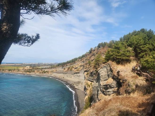 | ▲ 겹겹이 쌓인 시간이 빚어낸 해안 절벽과 유려한 곡선의 데크 길이 파란 바다와 조화롭다. |