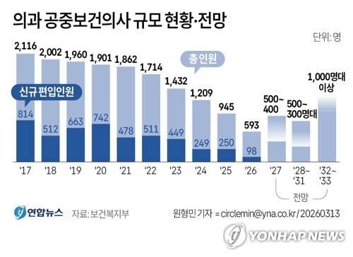[그래픽] 의과 공중보건의사 규모 현황·전망