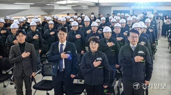 13일 오후 파주시 홍원연수원에서 열린 '2026 경기도노동안전지킴이 발대식'에서 안전지킴이들이 발대식을 보고 있다.