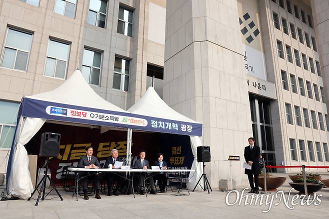 | ▲ 진보 4당·시민사회, 국회 앞 천막 농성 돌입... “정치개혁 입법 촉구”ⓒ 유성호 |