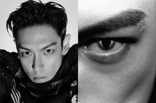 공개된 흑백 사진 속 탑은 특유의 강렬한 눈빛으로 카메라를 응시하며 압도적인 카리스마를 뿜어냈다.