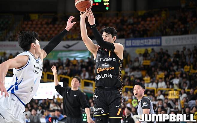 그러나 3점슛으로 경기가 풀렸다. 경기 종료 7분 2초전 유기상(25점)이 3점슛 시도 중 정성조의 파울로 얻은 자유투 3개를 모두 넣어 한숨을 돌렸다. 이어진 공격에서 유기상은 또 다시 3점슛을 성공시켰다. LG는 단숨에 85-76으로 달아났다.