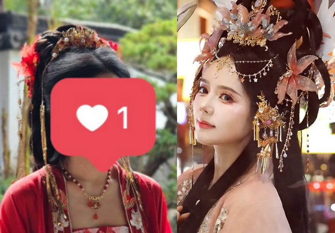 왼쪽 상단에는 왕홍 스타일로 변신한 한가인의 사진을 첨부했다.
