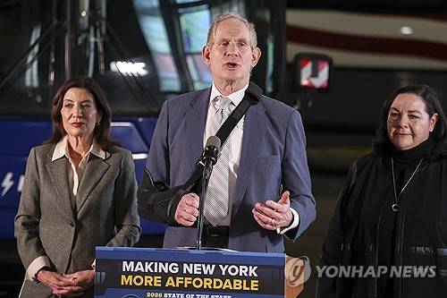 epa12817579 (L-R) New York Governor Kathy Hochul, MTA Chair and CEO Janno Lieber, and New York State Department of Transportation Commissioner Marie Therese Dominguez address a press conference at a bus depot in New York, New York, USA, 13 March 2026. Hochul and the Metropolitan Transportation Authority (MTA) announced a new MTA analysis showing that the Governor's proposal to lower the cost of auto insurance would also deliver 48 million US dollars in annual recurring savings for the MTA. EPA/SARAH YENESEL