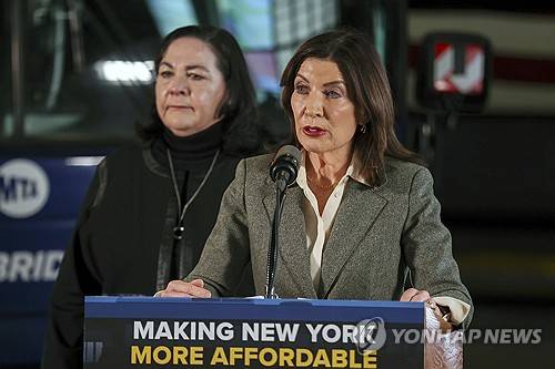 New York Governor Kathy Hochul holds press conference at bus depot