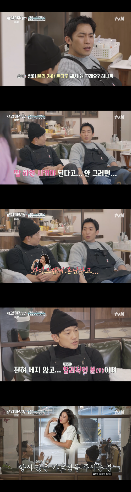 이어 이상이는 과거 촬영 당시 있었던 일화를 공개했다. 그는 “예전에 촬영 끝나고 회식을 했는데 형이 빨리 가야 한다고 했다”며 “왜 그러냐고 물었더니 딸 하원시켜야 된다고, 안 그러면 와이프한테 혼난다고 하더라”고 폭로했다.