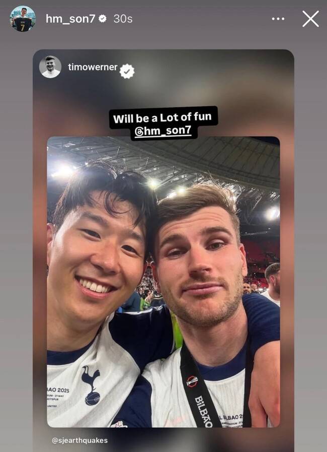 벌써부터 구단도 베르너도 손흥민과의 맞대결을 기대하고 있었다. 어스퀘이크는 베르너와 손흥민의 셀카 사진을 게시하며 8개월이나 남았음에도 손흥민의 소속팀 LAFC와의 홈 경기 일정을 홍보했다. 두 팀 모두 서부 컨퍼런스 소속이기에 올 시즌 두 차례의 맞대결이 기다리고 있고, 어스퀘이크 홈에서 9월 20일 경기가 치러진다. 베르너도 이를 자신의 SNS에 공유하며 “진짜 재밌겠다”고 기대감을 드러냈고, 손흥민도 재공유하며 화답했다.