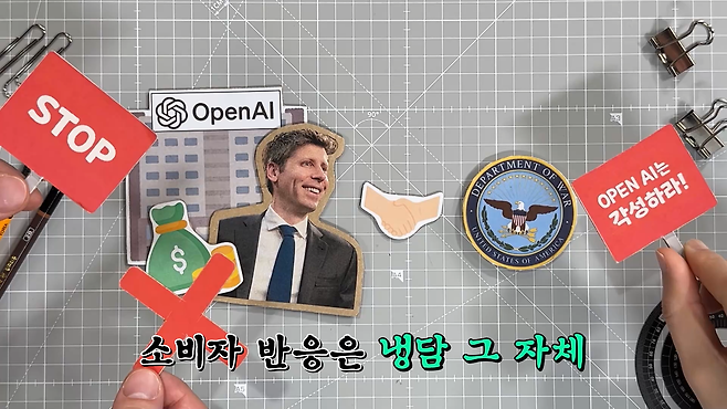 오픈AI는 앤트로픽이 거절한 국방부의 '모든 합법적 사용' 조항을 수용했습니다. 다만 이용자들로부터 강한 비판을 받자 오픈AI는 국방부와의 조항을 수정할 계획이라고 밝혔어요. 이를테면 앤트로픽의 레드라인 중 하나였던 대중 감시 금지 조항을 추가로 넣겠다고 한 거죠.