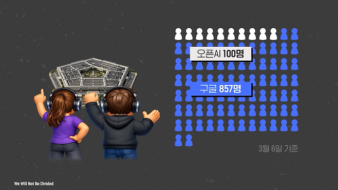 국방부의 압력에 맞서서 AI 기업들 간의 공동의 이해를 구축하기 위해 현재(3월 6일 기준)까지 총 957명의 직원들이 참여했습니다. 오픈AI에서 100명의 직원들이, 구글에서는 무려 857명이 참여할 정도로 연대하는 모습을 보여주고 있어요.