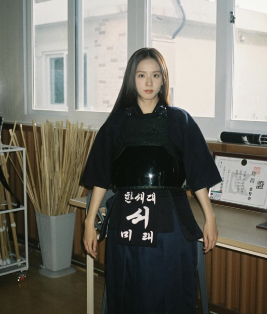 지수는 13일 자신의 SNS에 "새내기 서미래 입니당"이라는 글과 함께 넷플릭스 시리즈 '월간남친' 촬영 현장에서 담은 여러 장의 사진을 게재했다. 공개된 사진 속 지수는 검도복을 입고 청순하면서도 늠름한 '검도 여신'의 자태를 뽐내고 있다.