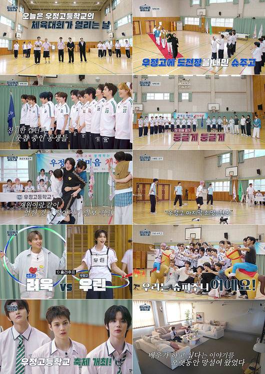지난 13일(금) 방송된 Mnet ‘응답하라 하이스쿨’ 5회에서는 우정고 학생 SMTR25와 옆 학교 ‘슈주고’로 등장한 슈퍼주니어 이특, 희철, 신동, 시원, 려욱, 규현이 체육대회를 통해 선후배 케미를 펼치는 모습이 그려졌다.