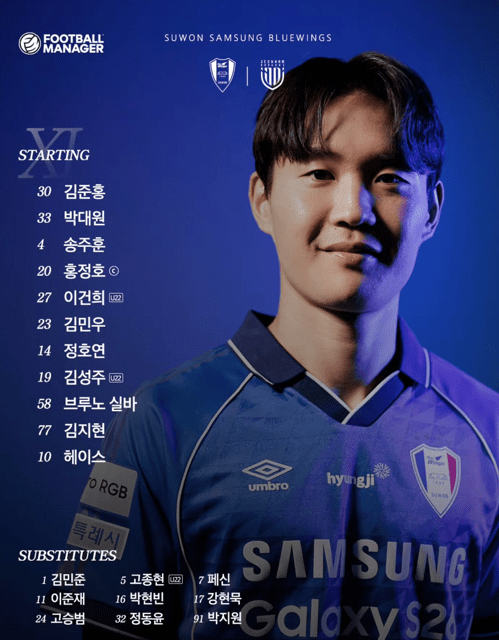 14일 오후 2시, 수원월드컵경기장에서 하나은행 K리그2 2026 3라운드 수원 삼성-전남 드래곤즈(이하 전남)전이 킥오프한다. 수원 삼성과 전남은 게임에 앞서 선발 명단을 공개했다.